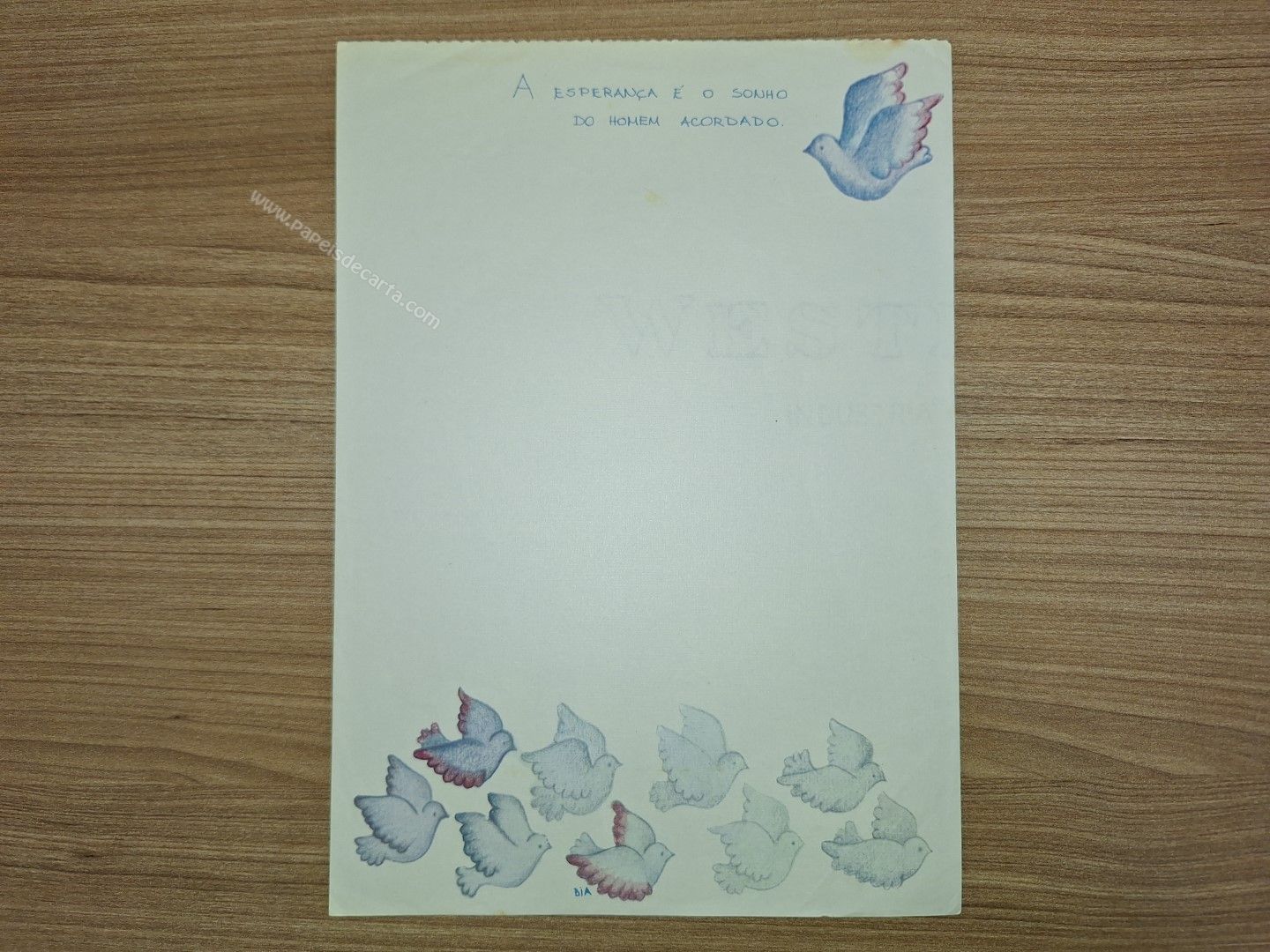 Papel de carta tamanho médio. ** Possui uma marca d água no papel. Ver foto **
