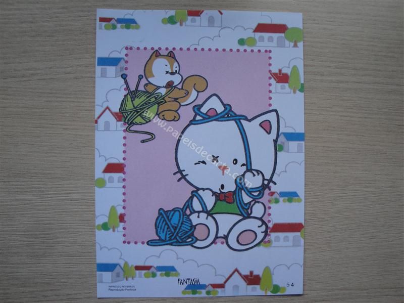 Papel de carta Fantasia nº 54 - Gatinho e esquilo brincando com o novelo