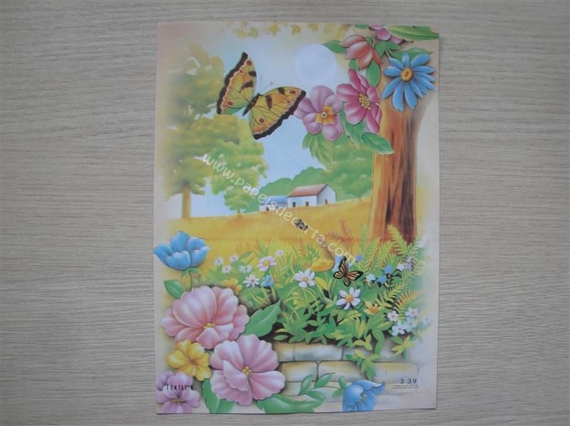 Papel de carta Fantasia nº 339 - Borboletas voando no jardim de uma casa em uma tarde ensolarada
