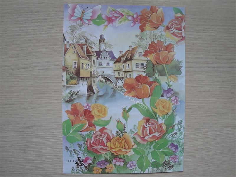 Papel de carta fantasia nº 344 - Uma pequena vila acima do rio