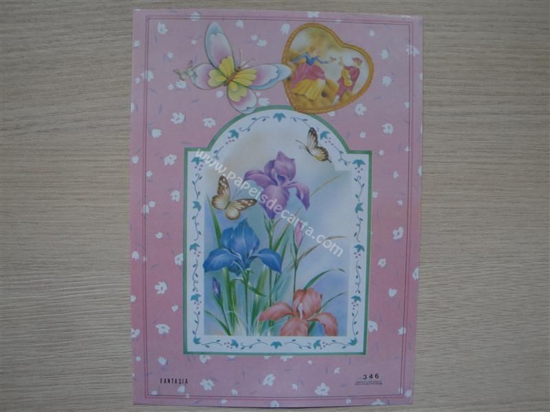 Papel de carta Fantasia nº 346 - Borboletas, flores e um casal dentro de um coração