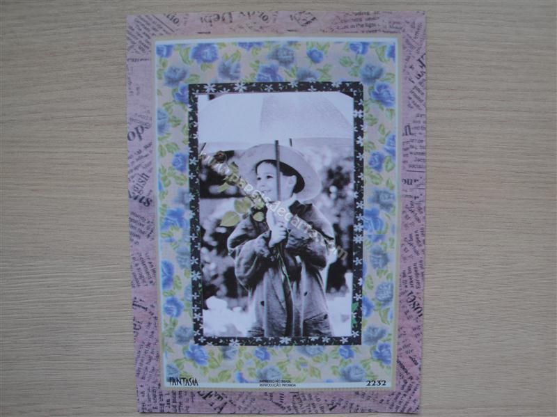 Papel de carta fantasia nº 2232 - Um menino segurando um guarda-chuva, vestindo um agasalho de inverno e com uma rosa em sua mão.