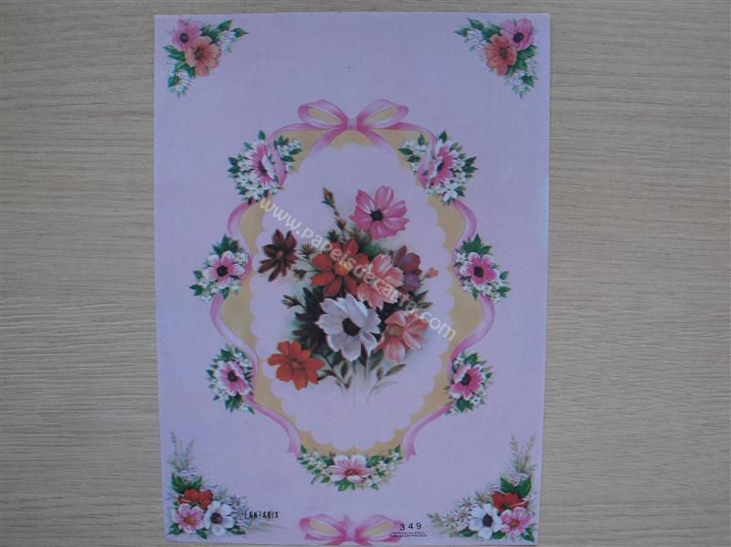 Papel de carta fantasia nº 349 - Um papel com algumas flores e laços feitos com uma fita rosa.