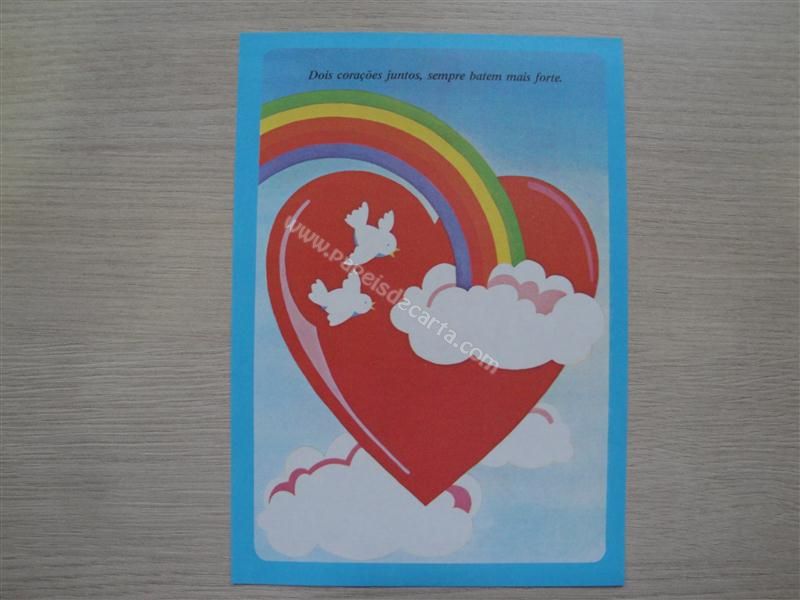 Papel de carta médio "Borda Azul" 22. Frase: Dois corações juntos, sempre batem mais forte.
