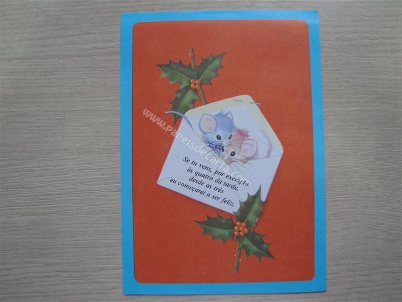 Papel de carta médio "Borda Azul" 34. Frase: Se tu vens, por exemplo, às quatro da tarde, desde às três eu começarei a ser feliz.