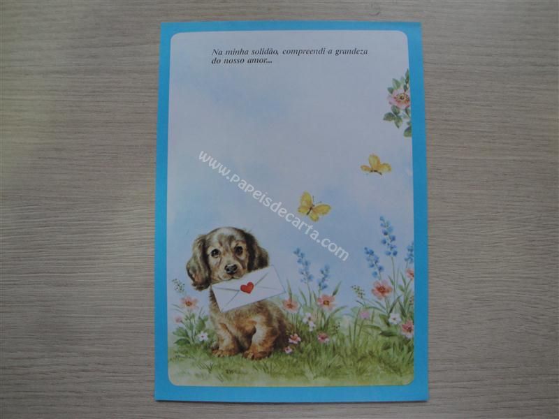 Papel de carta médio "Borda Azul" 46. Frase: Na minha solidão, compreendi a grandeza do nosso amor...
