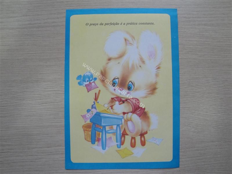 Papel de carta médio "Borda Azul" 55. Frase: O preço da perfeição é a prática constante.