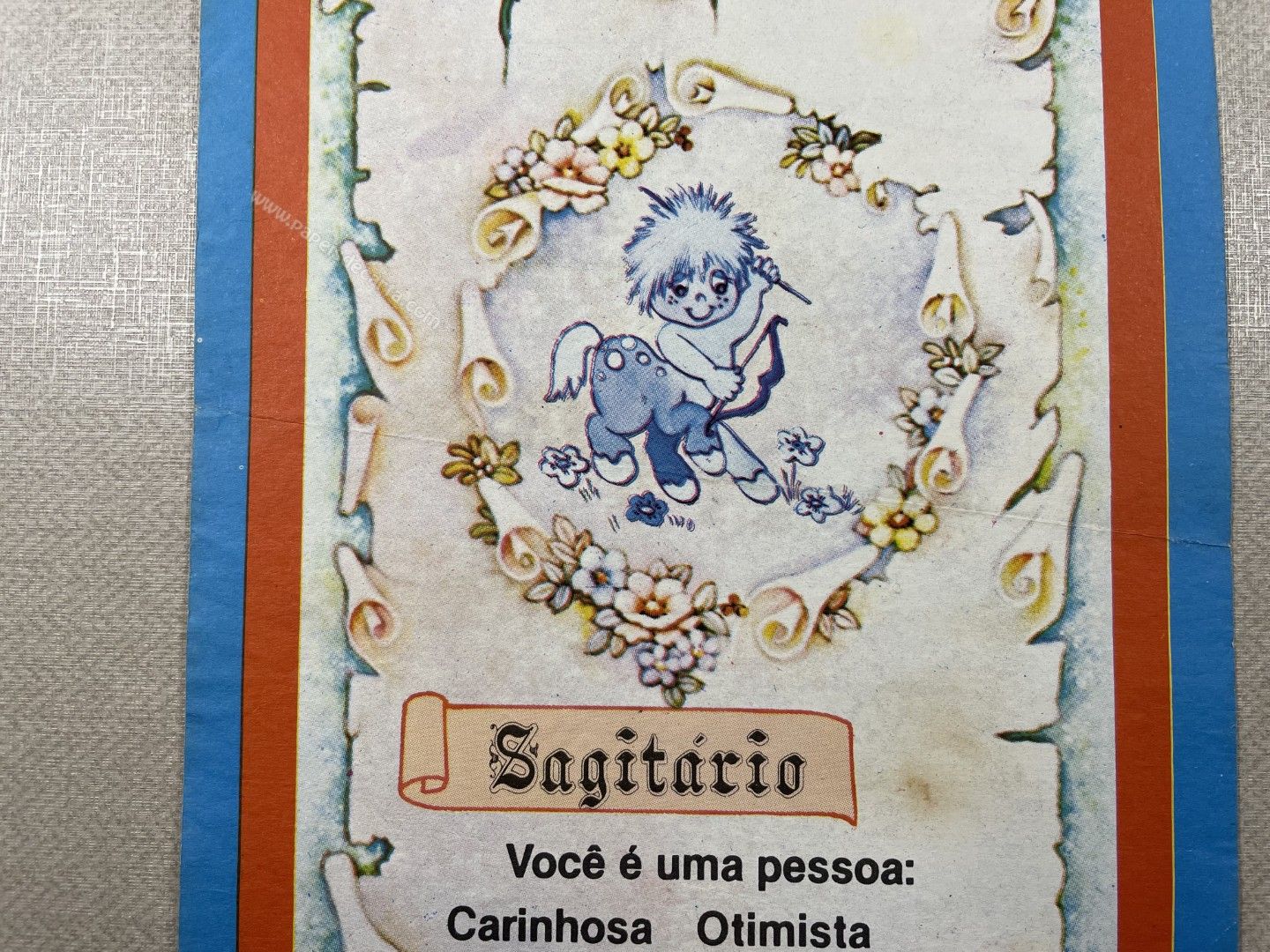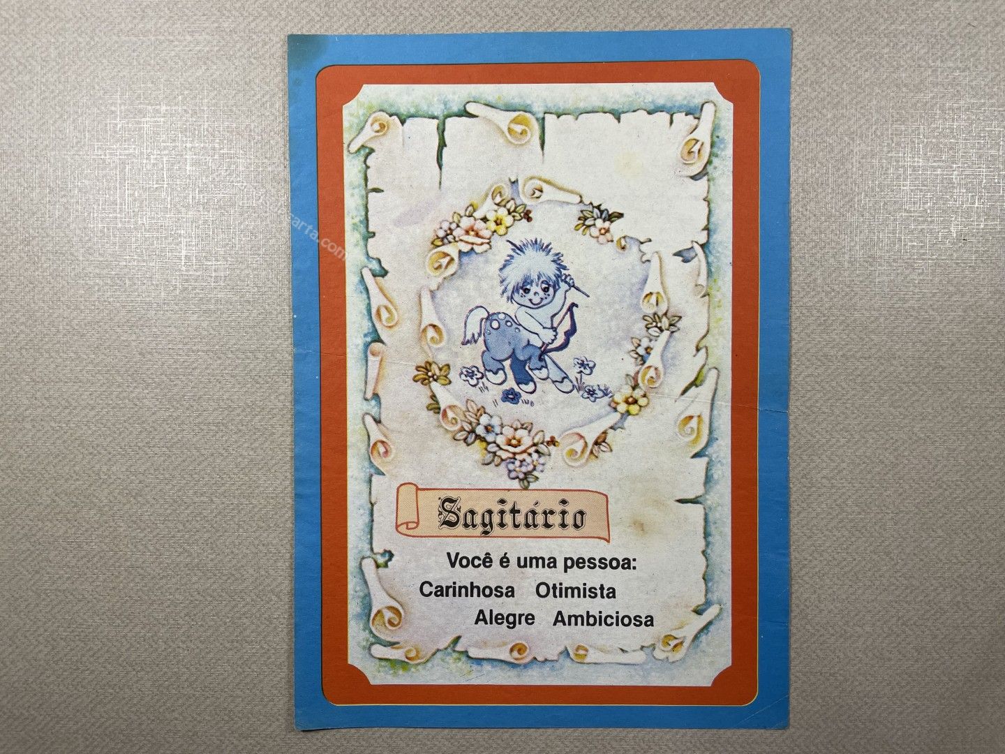 Papel de carta antigo, tamanho médio, da coleção "Borda Azul - Signos - Sagitário". ** O PAPEL POSSUI MARCAS DE DOBRAS.**