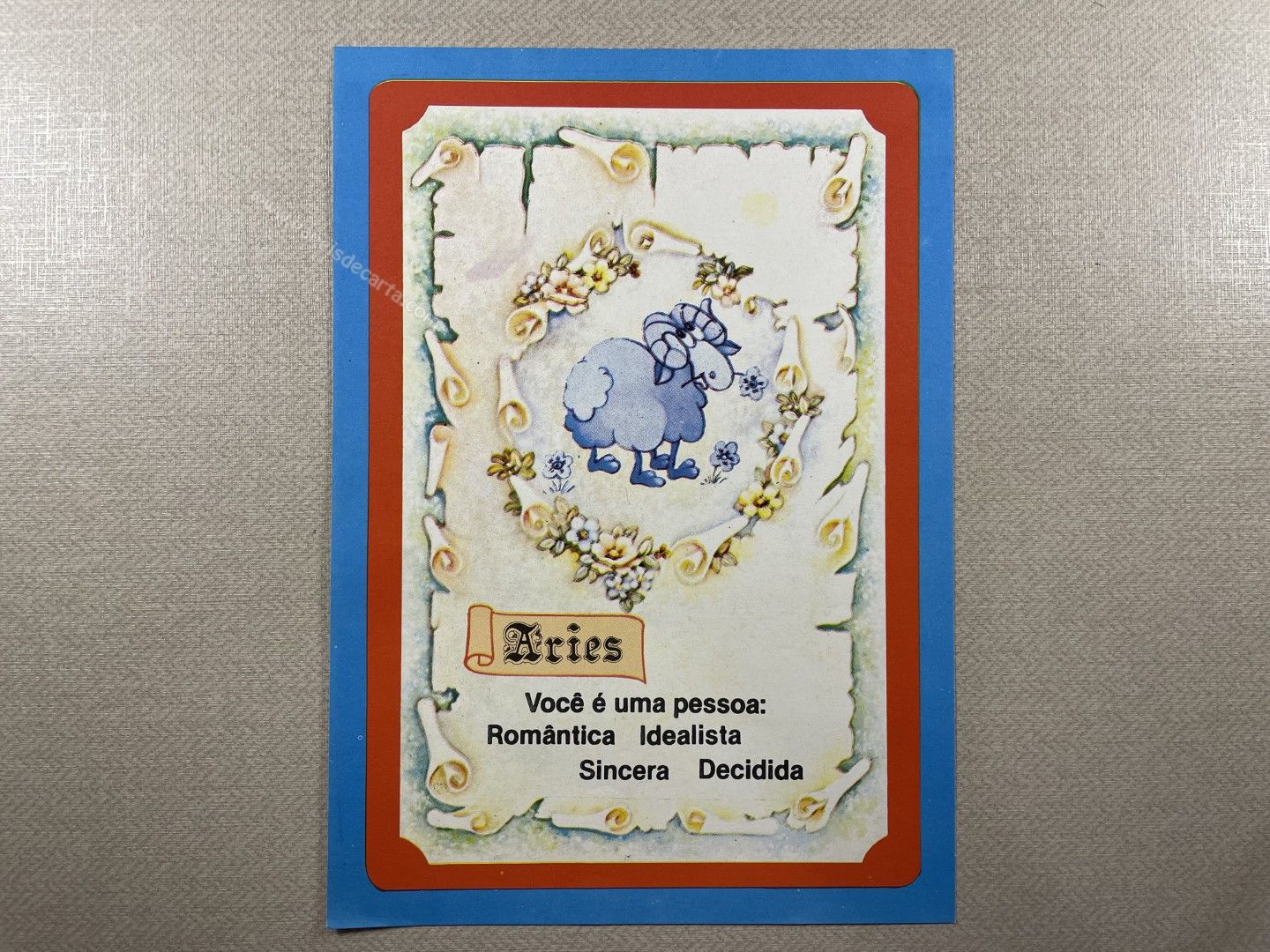 Papel de carta antigo, tamanho médio, da coleção "Borda Azul - Signos - Aries".