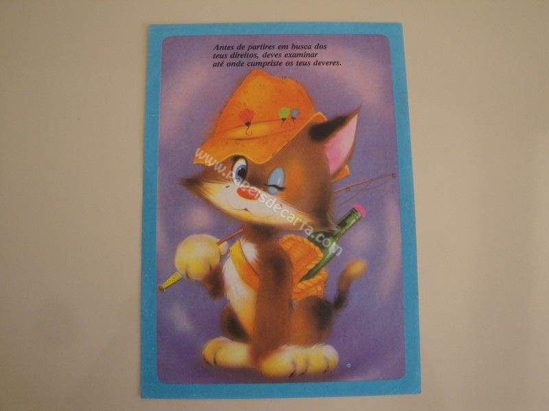 Papel de carta antigo, tamanho médio, raro, da coleção "Borda Azul". Frase: Antes de partires em busca dos teus direitos, deves examinar até onde cumpriste os teus deveres.