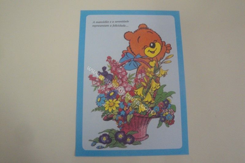 Papel de carta antigo, tamanho médio, raro, da coleção "Borda Azul". Frase: A mansidão e a serenidade representam a felicidade...
