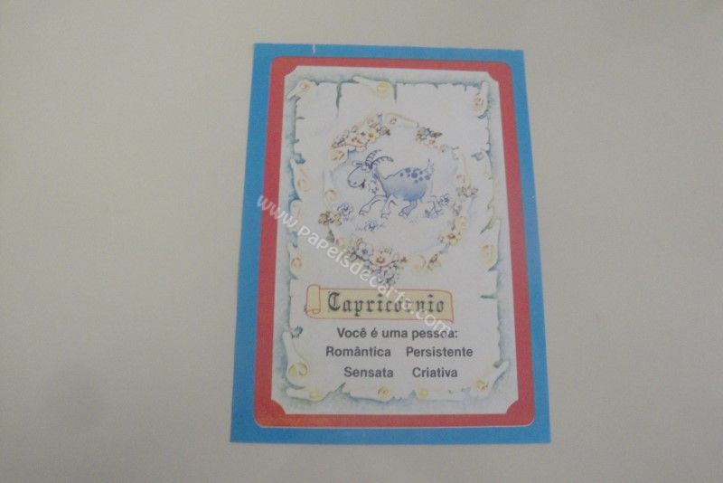 Papel de carta antigo, tamanho médio, raro, da coleção "Borda Azul". Frase: Capricórnio Você é uma pessoa: Romântica Persistente Sensata Criativa