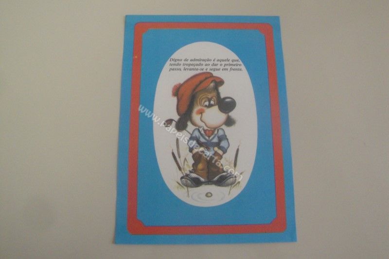 Papel de carta antigo, tamanho médio, raro, da coleção "Borda Azul". Frase: Digno de admiração é aquele que, tendo tropeçado ao dar o primeiro passo, levanta-se e segue em frente.