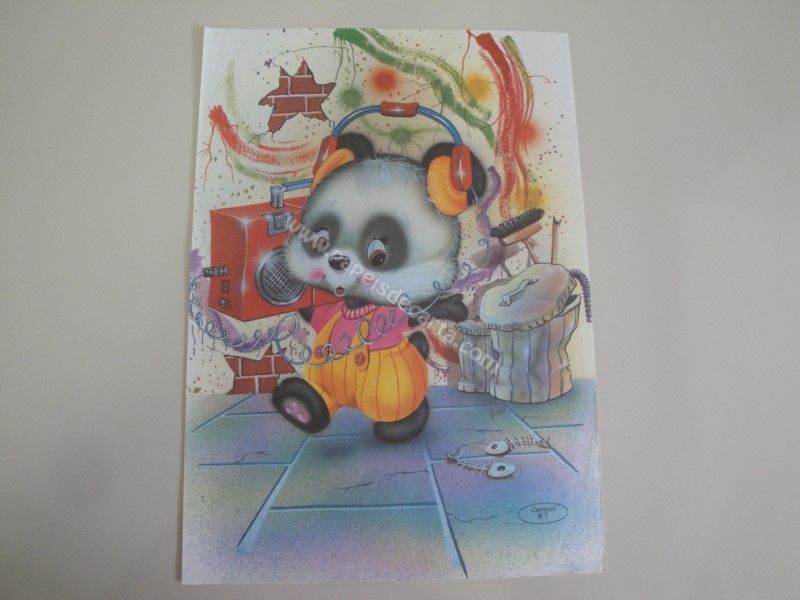 Papel de carta antigo, raro, tamanho grande, da coleção Carrossel - 67 - Uma ursinha panda escutando música.