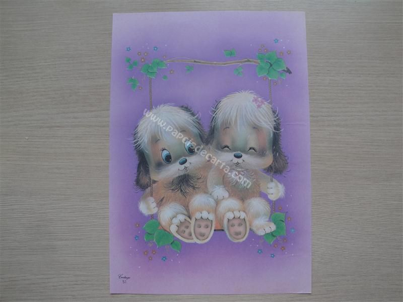 Papel de carta grande Cartiuge - 51 - Dois cachorrinhos sentados em um balanço.