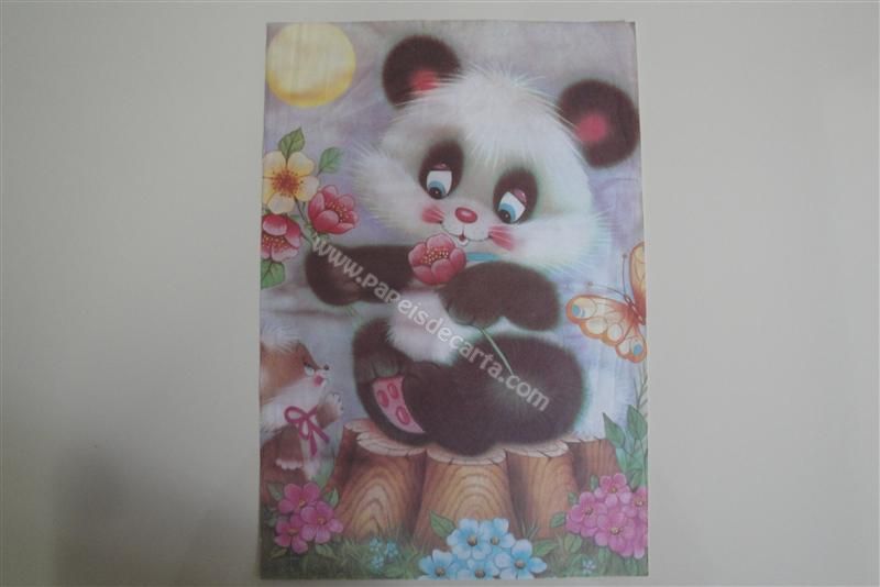 Papel de carta grande Cartiuge - 231 - Um ursinho panda colhendo flores.
