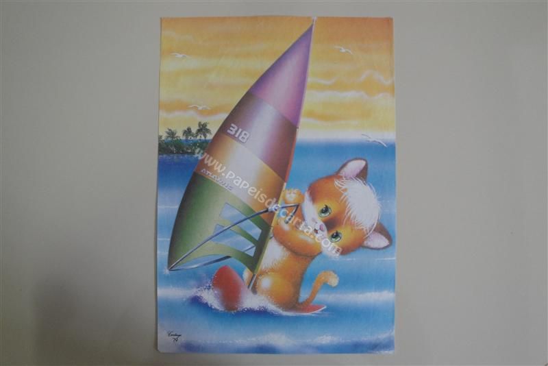 Papel de carta grande Cartiuge - 79 - Um gato praticando windsurf.