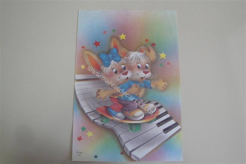 Papel de carta grande Cartiuge - 122 - Um casal de coelhos andando de skate sob um teclado de piano.