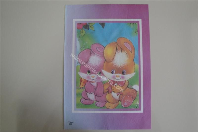 Papel de carta grande Cartiuge - 222 - Um casal de coelhos passeando no campo.