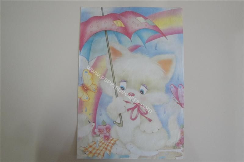 Papel de carta grande Cartiuge - 232 - Uma gatinha desapontada segurando um guarda-chuva enquanto seu filhote recolhe a toalha do piquenique.