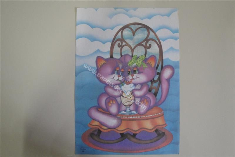 Papel de carta grande Cartiuge - 68 - Um casal de gatinhos dividindo um milk-shake.