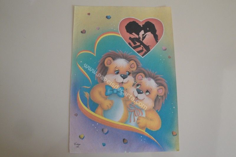 Papel de carta grande Cartiuge - 38 - Um casal de leões abraçados.