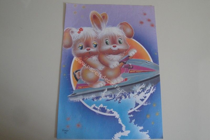 Papel de carta grande Cartiuge - 75 - Um casal de coelhos andando de jet-ski.