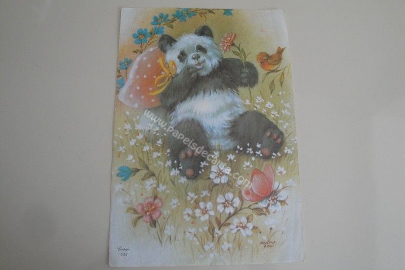 Papel de carta grande Cartiuge - 147 - Um urso panda sentado em um jardim.