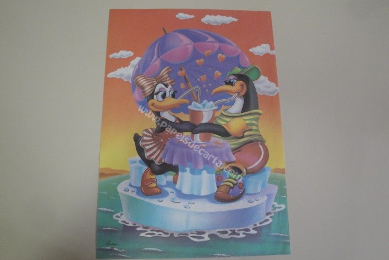 Papel de carta grande Cartiuge - 84 - Um casal de pinguins dividindo um refresco.