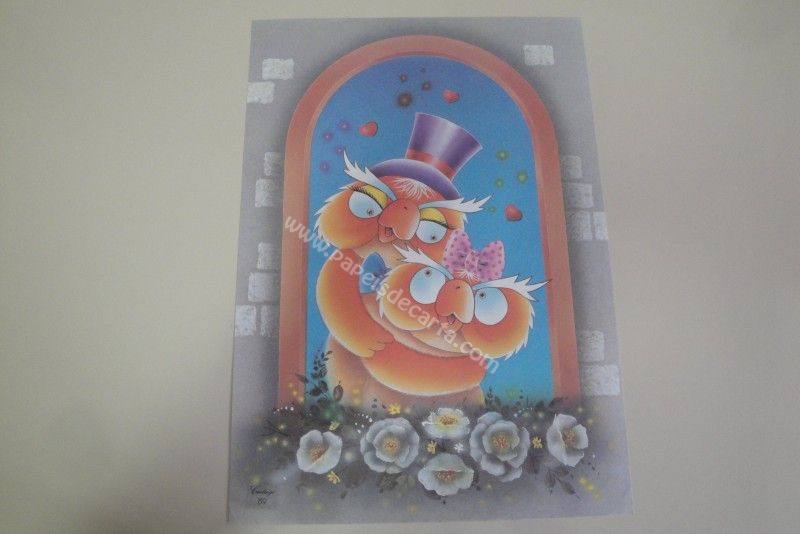 Papel de carta grande Cartiuge - 89 - Um casal de corujas namorando na janela.