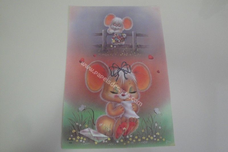 Papel de carta grande Cartiuge - 106 - Uma ratinha sentada no jardim, lendo a carta de seu amado.