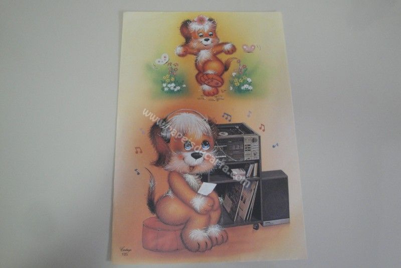 Papel de carta grande Cartiuge - 125 - Um cachorrinho escutando música e pensando em sua namorada dançando.