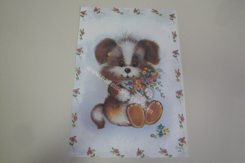 Papel de carta grande Cartiuge - 143 - Um cachorrinho sentado segurando flores.