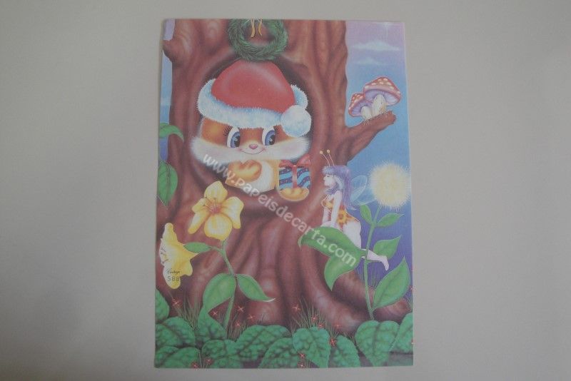 Papel de carta antigo, raro, tamanho médio, da coleção Cartiuge, número 588, com tema de Natal.