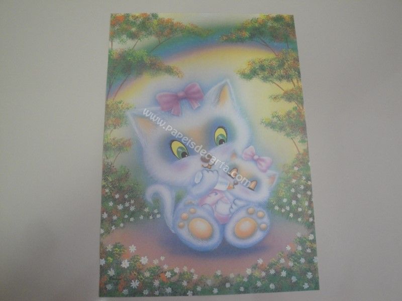 Papel de carta antigo, tamanho grande, da coleção Cartiuge, número 53 - Uma gatinha dando mamadeira para sua filhote.