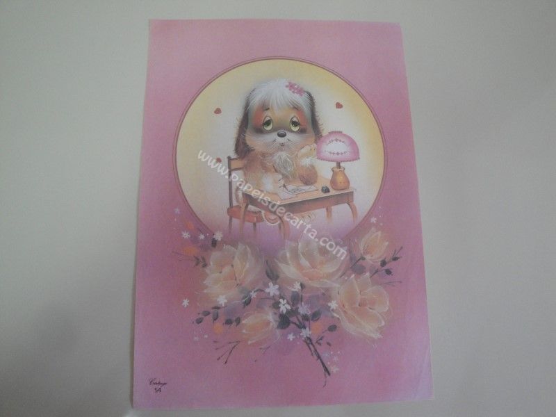 Papel de carta antigo, tamanho grande, da coleção Cartiuge, número 54 - Uma cachorrinha escrevendo uma carta de amor.