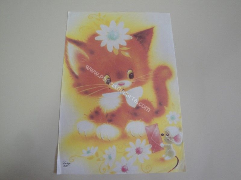 Papel de carta antigo, tamanho grande, da coleção Cartiuge, número 239 - Uma gatinha recebendo uma carta de um ratinho.