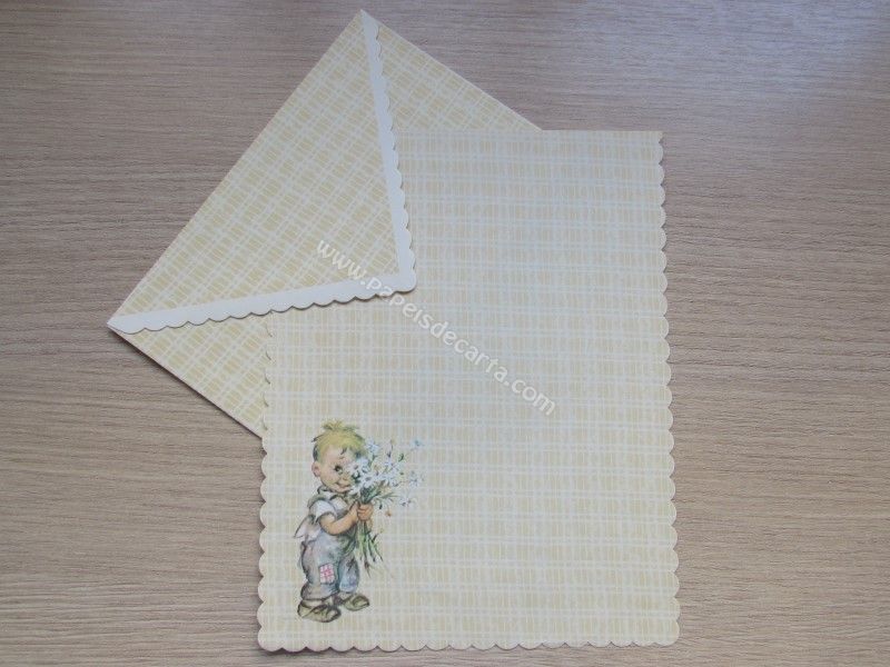 Papel de carta antigo com envelope, de coleção não identificada. Tamanho médio.