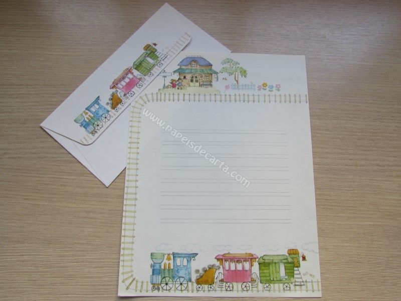 Papel de carta antigo com envelope, de coleção não identificada. Tamanho um pouco maior que o médio.