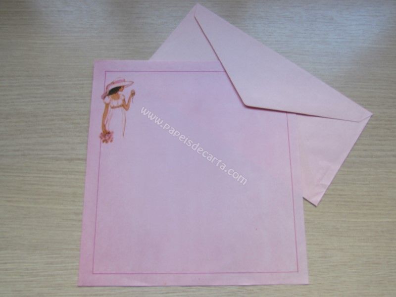 Papel de carta antigo com envelope, de coleção não identificada. Tamanho médio.