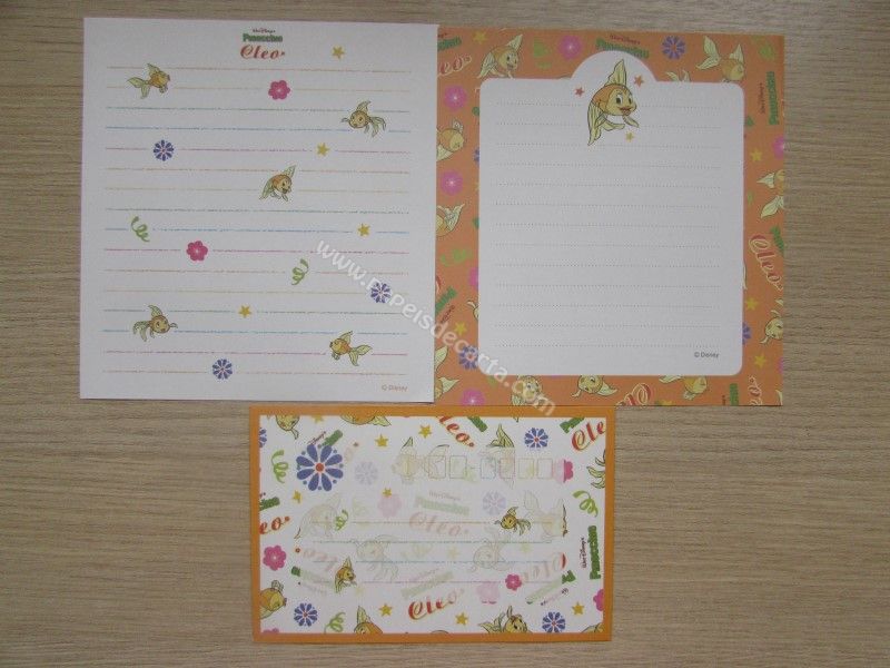 Conjunto importado, de papel de carta do Pinocchio, com 2 folhas diferentes e 1 envelope, da Disney.