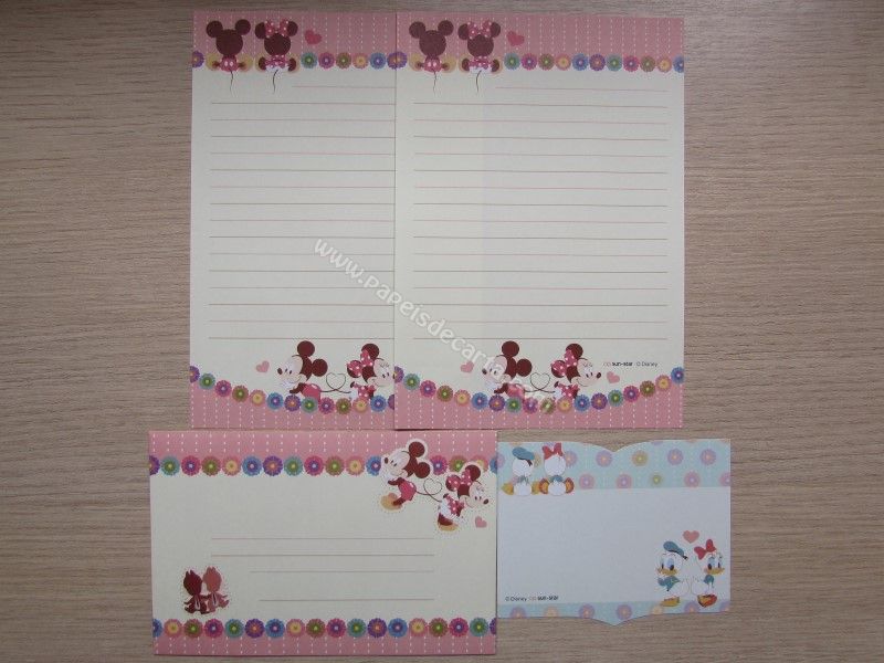 Conjunto importado, de papel de carta com 2 folhas iguais, 1 envelope e 1 notinha do Mickey and Friends.