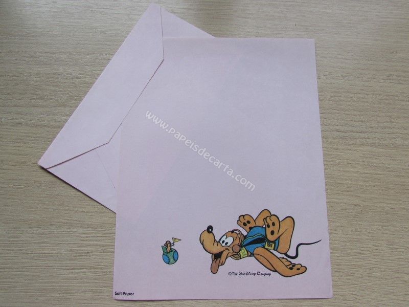 Conjunto de papel de carta antigo do Pluto, com 1 folha e 1 envelope, da Disney.