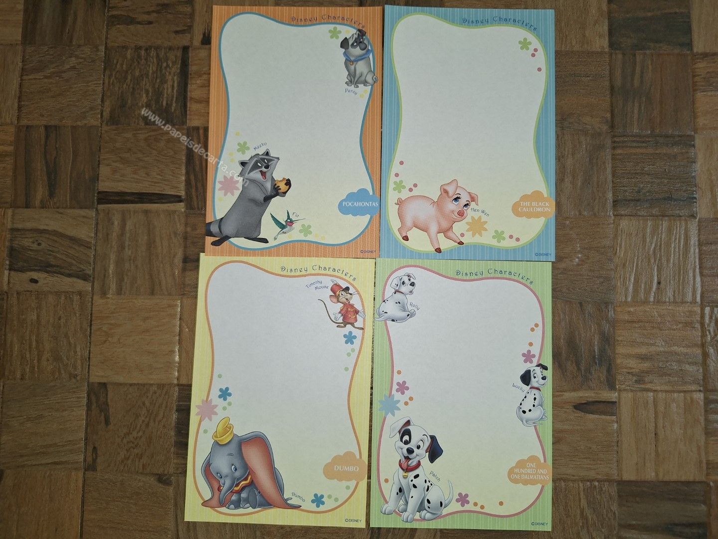 Conjunto importado, de papel de carta PEQUENO, com 04 papéis diferentes da Disney Classic Characters.