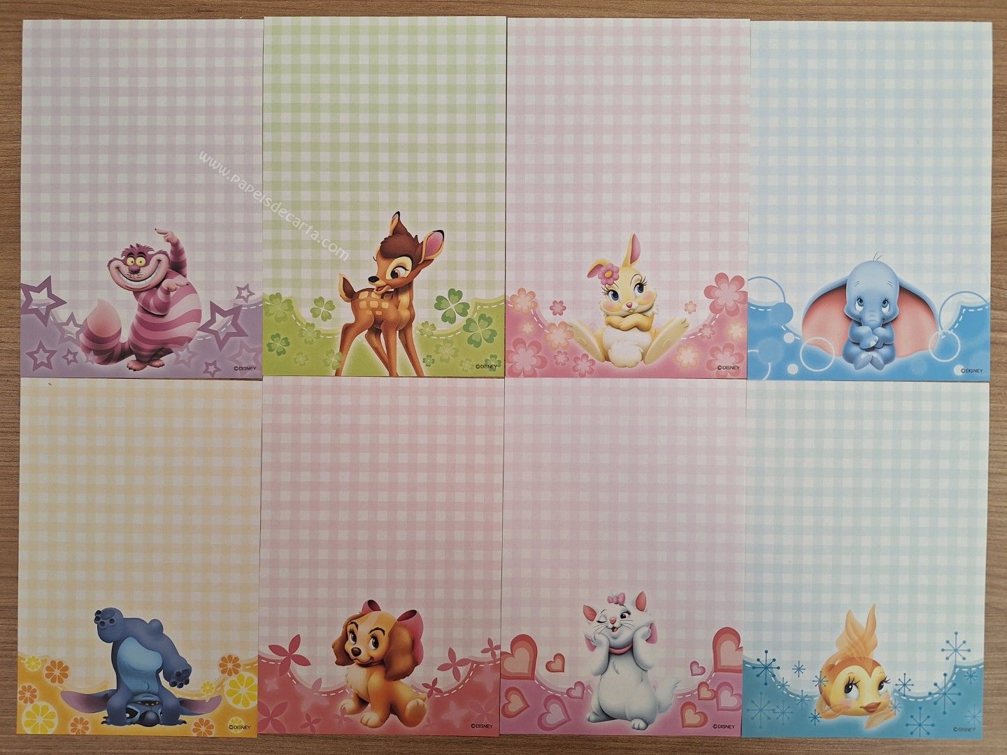 Conjunto importado, de papel de carta PEQUENO, com 08 papéis diferentes da Disney Classic Characters.