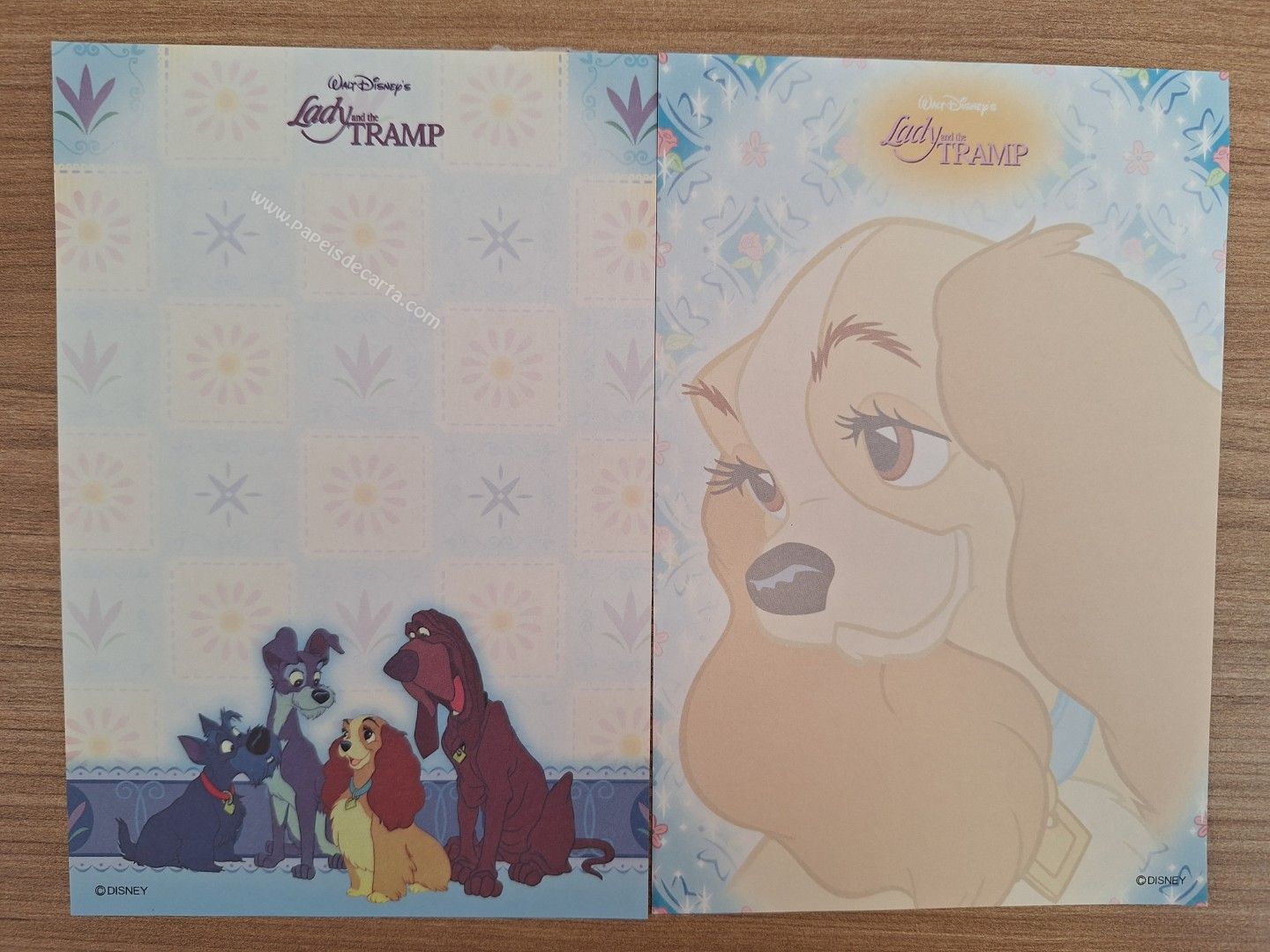 Lote com 2 papéis de carta importado, tamanho pequeno, da Lady and the Tramp.