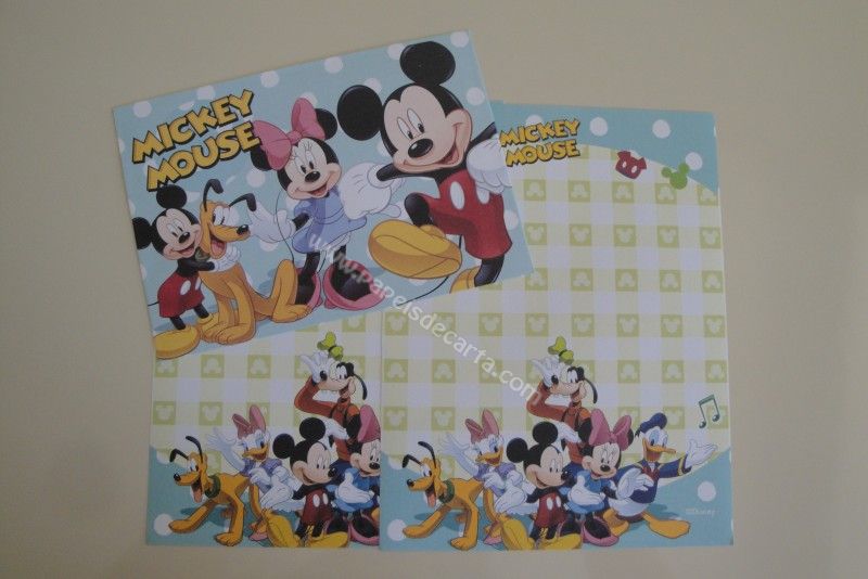 Conjunto importado, de papel de carta com 2 folhas iguais e 1 envelope do Mickey and Friends.