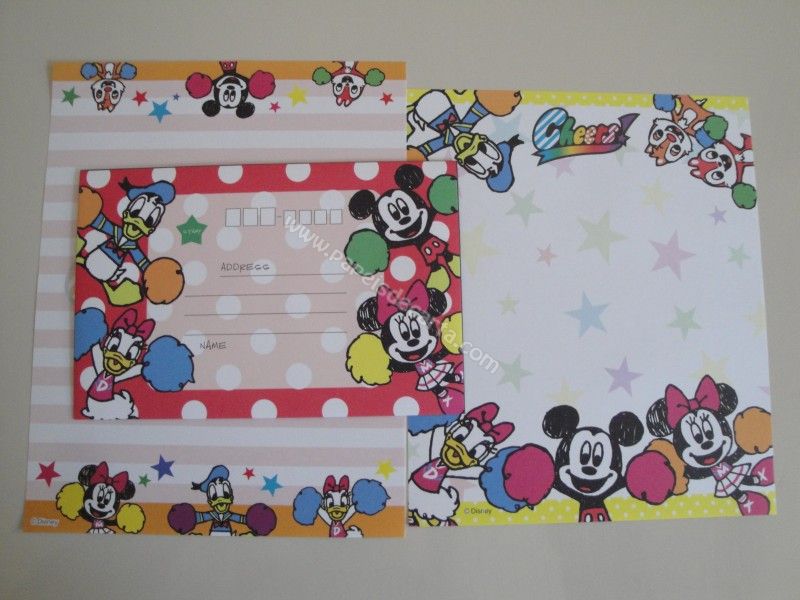 Conjunto importado, de papel de carta com 2 folhas diferentes e 1 envelope do Mickey and Friends.