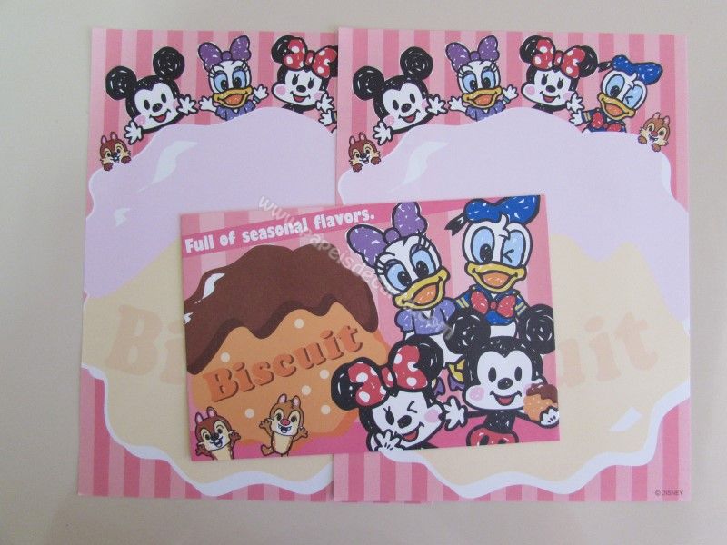 Conjunto importado, de papel de carta com 2 folhas iguais e 1 envelope do Mickey and Friends, com o Mickey, a Minnie, a Miss Daisy (Margarida), o Donald Duck (Pato Donald) e o Chip & Dale (Tico e Teco).