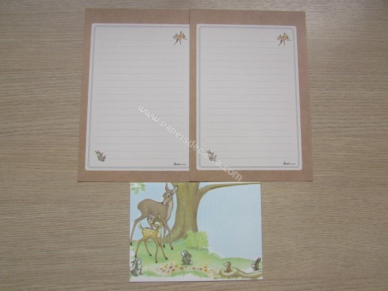 Conjunto importado, de papel de carta do Bambi, com 2 folhas iguais e 1 envelope, da Disney. Fabricante: Greeting Life.